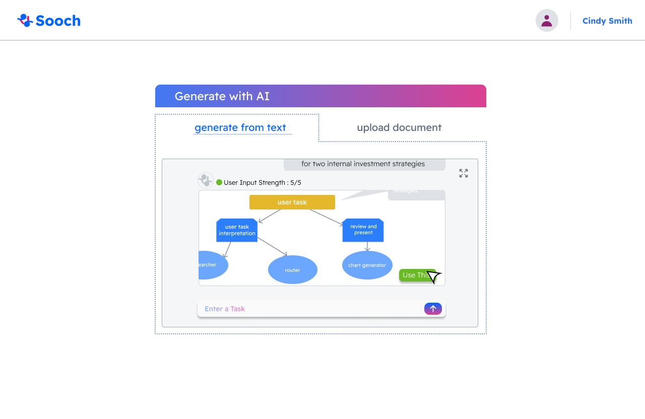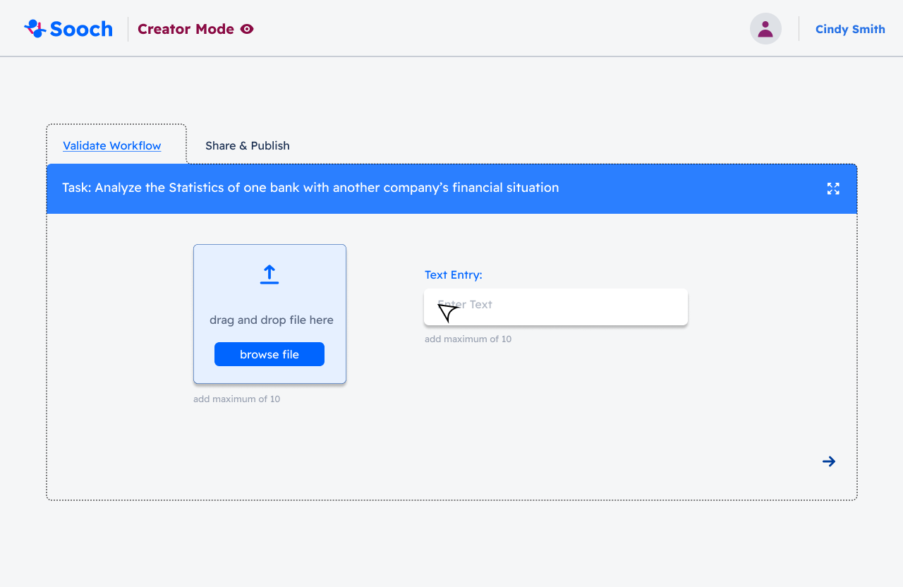 Once the validation process is successful and any necessary adjustments to collaborator permissions are made, the finalized document will be readily accessible on the homepage. This allows users to easily locate and manage their projects, ensuring a seamless workflow as they continue to build and refine their applications. By streamlining these processes, we aim to enhance user efficiency and overall experience within the SOOCH.AI application.