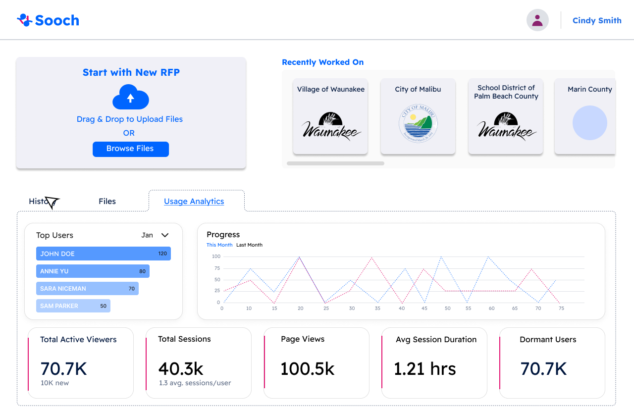 Lastly, the Request for Proposal (RFP) feature enables clients to access analytics related to their RFPs. Our design aims to provide three key functionalities: the Answer Engine, Executive Brief Creator, and Response Creator, all designed to be accessible and intuitive for users.